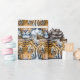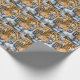 O papel embrulho com uma face próxima do rosto de um tigre, onde o tigre está olhando diretamente para você, e suas marcas listradas laranja e preta são mostradas em detalhes e vibrações no excelente. Embalagem divertida para amantes de animais e animais selvagens. Foto tirada em San Diego, Califórnia.