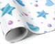 Este charmoso papel de embrulho "Congelado Fairy Tale" foi projetado com uma mistura de estrelas, corações, flores e bolinhas em tons legal de azul, roxo e rosa. Os padrões encantadores trazem uma magia, wintery se sentem perfeitos para uma comemoração de aniversário temática da Princesa de Gelo.