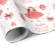 Torne a festa do primeiro aniversario da sua filha uma aventura mágica com o nosso papel de embrulho de festa de aniversário personalizável de morango. Apresentando uma bela fada em um vestido vermelho de morango, com morangos, arcos e flores bonitos, é perfeito para qualquer menina. É totalmente personalizável, permitindo que você adicione texto e personalize com o nome de sua filha.