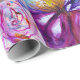 Fada floral vibrante e colorida,redemoinhos florais e uma planta de borboleta mágica,pintura contemporânea em aquarela em cores iridescentes roxo, violeta, rosa, fúcsia, azul, verde, dourado e prata por Bulgan Lumini (c)