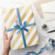 Papel De Presente Faixa Diagonal Branca Dourada Glam