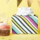 Dê aos seus presentes um toque brilhante e ousado de finalização, com este papel colorido de embrulho. O presente é moldado com faixas diagonais em combinação com cores vibrantes, incluindo o magenta rosa, azul claro, amarelo-limão, branco e marinho.