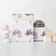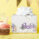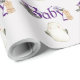Este papel personalizado fofo e assustador apresenta um tema de chá de fraldas de Halloween. Uma imagem de um pequeno fantasma branco é impressa abaixo da palavra "Baby" , que é impressa em uma fonte roxa assustadora. As teias de aranha e um morcego bebê acendem o texto. Você pode personalizar o papel de empacotamento para incluir seu próprio nome ou texto personalizado.