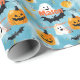 Este papel personalizado de embrulho do Dia das Bruxas apresenta uma design divertida com fantasmas alegres, abóboras esculpidas e morcegos assustadores sobre um fundo azul vibrante. Perfeito para as comemorações do Dia das Bruxas, truque ou trato, e festividades de outubro, este presente festivo pode ser personalizado com nomes, acrescentando um toque único e especial aos presentes do Dia das Bruxas. Ideal para crianças e adultos, este papel embrulhador melhora o espírito do Halloween, fazer que seus presentes se destacem com sua divertida e assustadora design.