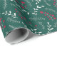 Farmhouse country emerald verde, folhagem vermelha e branca, coroa, folhas, papel de embrulho de presente de Natal giro, padrão rústico. Excelente para o Natal e o feriado.
