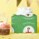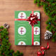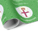 Faroe Islander Flag Christmas angel personalized wrapping paper. Design features an angel, dressed in the flag of the Faroe Islands inside a white circle of squiggly squares. Background is green squiggly squares. Personalized with name, year, and holiday, or whatever you wish. Wrap your holiday gifts and share your heritage or travel plans at the same time.