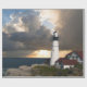 Farol que brilha brilhantemente em uma tempestade. Tag: oceano, mar, costa, rochosa, rochas, farol, luz, tempestade, beleza, bonita, litoral, casa, brilhante, "calma antes da tempestade", nuvens, obscuridade, foto, fotografia, incrível, fantástica, arte,