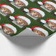Chita, ou concha de tartaruga com branco, gato do gatinho em um chapéu de Papai Noel com apenas a ponta de sua língua que mostra em um papel de envolvimento delicado e feminino do feriado do Natal dos amantes do gato da farsa