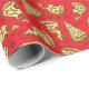É uma festa de pizza! As fatias de pizza que parecem deliciosas estão espalhadas em um fundo vermelho neste papel de embrulho divertido.