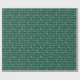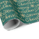 Este papel de embrulho é decorado com ouro falso desenhado à mão, com letras de Natal Merry, estrelas e flocos de neve sobre um fundo de aquarela verde.