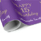 Papel De Presente Feliz 15 Birthday Dourado Glitter e Roxo