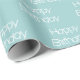 papel de empacotamento de texto de aniversário feliz e branco azul
