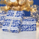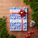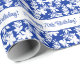 Papel De Presente Feliz Aniversário Azul Padrão Floral Branco