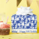 Elegante, design chic com um lindo e moderno padrão floral branco em azul. Caligrafia elegante para a feliz personalização de aniversário.
