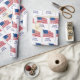 Bandeira americana com texto "Feliz Aniversário" e fogos de artifício dourados em branco.