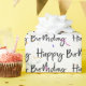 Fonte divertida de texto de aniversário feliz com confete colorido em fundo branco. A cor de fundo pode ser alterada.