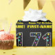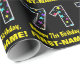 Este design de papel empacotado com tema de aniversário divertido apresenta um grande número "71", preenchido com um padrão de formas decorativas de estrelas com vários tamanhos e cores. Também apresenta a mensagem "Feliz 71ruas Aniversário", e um nome personalizado. O fundo é preto colorido. Um papel de embrulho divertido como este pode ser usado ao embrulhar presentes que estão sendo dados a alguém em comemoração de seus setenta e primeiros anos. [~Z0000429]