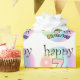Roze gelukkige zevende verjaardag. Leuk om the geven als cadeau an iemand die zeven jaar é geworden. Vrolijk design conheceu regenboog kleuren.