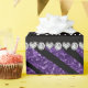 Padrão moderno de zebras roxas-zebra (impressão animal) (não brilho real) com diamantes negros (não diamantes reais) com corações e pontos. Ideias de presente de zebra brilhante para raparigas, adolescentes e mulheres. Aniversário embrulhando papel com as palavras feliz aniversário!