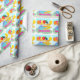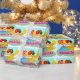 Feliz Aniversário do Cartoon Bonito Dinossauros e Balões de Papel de Embalagem para Crianças com o nome "Samantha" totalmente personalizável e "5" anos de idade. Estegossauro, diplodocumental laranja e dinossauros tricerátopos amarelos, bem como balões coloridos, com o texto "Feliz Aniversário" e a folha de papel cinza de dinossauro "5", de idade totalmente personalizável, para presentes e presentes. Este colorido papel de empacotamento de aniversário feliz de dinossauros de desenho animado é totalmente personalizável, mude nome e idade e adicione seu texto e imagens! Papel de embrulho adorável para o grande fã de dino numa festa de aniversário temática de dinossauro!