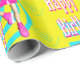 Papel De Presente Feliz Aniversário Do cheerleader Em Amarelo Brilha