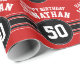 Vermelho, Branco e Negro - Este design de esporte e de corridas é perfeito para qualquer atleta que joga hóquei, futebol, futebol ou beisebol. Você muda os números para seu número de sorte ou mesmo uma idade especial para uma comemoração de aniversário. Um design robusto e masculino com uma área para qualquer data de aniversário - 5, 50º, 70 ou outro!