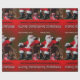 Um papel de embrulho de Natal corrigido sazonalmente com Papais noeis desejando a Jesus um Parabéns.