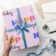 Papel De Presente Feliz Aniversário Letras Acentuadas Florais