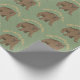 Este papel de embrulho para ursos de forma neutra do ponto de vista do gênero apresenta uma taça cinzenta desenhando colorido digitalmente e o texto "Parabéns Primeiro Aniversário", que você pode personalizar no painel à direita. Ideal para festas temáticas florestais e animais. O papel de embrulho rústico está num esquema de cor verde e laranja atraente. Arte original por Wilderness Store