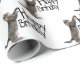 Cinza de gato brincando com mensagem de aniversário feliz isolada em branco. A cor branca do fundo pode ser alterada.