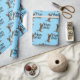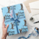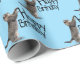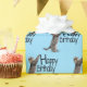 Cinza de gato brincando com mensagem de aniversário feliz em azul. A cor de fundo pode ser alterada.