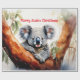 Uma Feliz de Natal Aussie com uma coala aquática sentada numa goma de goma Este coala pelido é um nativo da Austrália que são facilmente reconhecíveis pelo seu corpo escondido, sem caudas e cabeça grande, com orelhas redondas, fofinhas e nariz grande e em forma de colher.