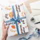 "Feliz Ação de Graças Orange Pumpkins White Seamless Wrapping Paper" combina abóboras laranja brilhantes com o texto "Feliz Ação de Graças", criando um plástico alegre e sazonal para presentes de Ação de Graças.