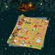 Este papel de embrulho festivo intitulado "Feliz e Natal Brilhante" apresenta um design alegre sobre um fundo de ouro. Adorado com ilustrações encantadoras em vermelho, verde e branco, inclui representações adoráveis de Papai Noel, homens de gengibre, bonecos de neve, doces, etc., perfeitas para espalhar alegria de férias.