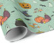 Feliz Dia das Bruxas II - Combinando ícones do Halloween - caldeirão das bruxas, chapéu de bruxa, fantasmas, morcegos e abóboras num padrão de fundo uniforme em verde.