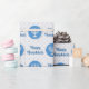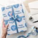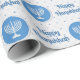 Aqui temos um papel de embrulho que apresenta um círculo azul-céu com uma menorah nele, e as palavras Happy Hanukkah em azul sobre um fundo com vários padrões de bolinhas e azul. Este documento está disponível em vários tamanhos e corresponde a outros papéis de embalagem, papéis de tecidos, sacos de presentes e um cartão de saudação. Isso certamente fará uma adição perfeita aos seus presentes nesta temporada de festas.