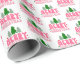 Um design divertido e feminino que diz Feliz Natal em uma fonte de moda e decorado com árvores de Natal.