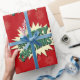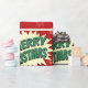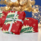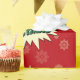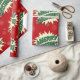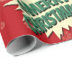 Ilustração feliz do estilo cômico de Natal com árvore de Natal e decoração de flocos de neve em fundo vermelho
