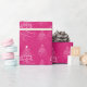 Um bonito design de Natal para o seu presente de Natal que inclui árvores de Natal com o ditado "Feliz Natal" escrito em um fundo rosa angustiado.