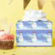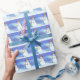 Giftwrap com meu design de bonitinho sorridente, vestindo um chapéu vermelho que diz "Feliz Natal" e segurando uma cana doce.