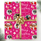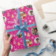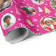 Torne seus presentes de feriados especiais extra com papel personalizado de empacotamento de fotos! Este modelo editável é personalizado com cinco de suas fotos favoritas, e o nome do destinatário, o nome da sua família ou o ano de feriado. Um design elegante com quadros de imagem em forma de círculo, colocado sobre um fundo com padrão. Apresenta "Feliz Natal" na tipografia da escrita, com árvores festivas, flocos de neve e motivos estelares — uma mistura de elementos tradicionais do Natal e estilo moderno, com linhas simples e limpas e formas geométricas. Perfeito para fotos de crianças, família, amigos e animais de estimação! Um pacote de presentes de padrão uniforme, disponível com um acabamento mate ou brilhante. Cores impressas: rosa, branco e ouro.
