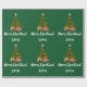 Um presente de Natal moderno e minimalista para crianças, com uma árvore de Natal decorada com bolas, luzes e canetas doces; o "Feliz Natal" na tipografia da na moda, e um nome personalizado. Em um fundo verde de Natal.
