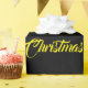 Cor amarela brilhante Roteiro de Natal Merry num papel de fundo preto para a época festiva.