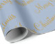 Papel de embrulho de presente de Natal elegante. Design apresenta uma bela caligrafia moderna Feliz Natal em um roteiro dourado com fundo azul de inverno. Fácil de personalizar o fundo com a sua cor favorita da época de férias. Perfeito para o seu presente de Natal precisa desta época festiva. Confira!