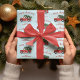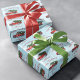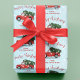 Este design apresenta um feliz roteiro de caligrafia natalícia papel de embrulho vermelho com um belo caminhão vermelho-rústico de inverno, vintage moldado à moda antiga, eterno clássico de virada para o na moda, floco de neve de inverno caindo, floco de neve de neve de inverno vermelho, azul branco de feriado, material de embrulho de Natal, presente de Natal bonito, personalização diversão personalizada