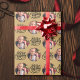 Papel de embrulho fotográfico, personalizado com sua fotografia e com a mão gravada com Feliz Natal em caligrafia escovada. O modelo de fotografia está configurado para apresentar a sua imagem em forma redonda. Se tiver algum problema com o posicionamento da imagem, tente recortar a foto em um quadrado e carregá-la novamente. A cor de fundo é ouro, que você pode alterar (basta clicar em "editar usando a ferramenta design").