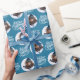Papel de embrulho fotográfico, personalizado com sua fotografia e com a mão gravada com Feliz Natal em caligrafia escovada. O modelo de fotografia está configurado para apresentar a sua imagem em forma redonda. Se tiver algum problema com o posicionamento da imagem, tente recortar a foto em um quadrado e carregá-la novamente. A cor de fundo é azul, que você pode alterar (basta clicar em "editar usando a ferramenta design").