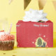 Esta é uma bela design de Natal com um vibrante cheio vermelho de fundo de estrelas e minúsculos flocos de neve e com um gato bonito em frente a uma árvore de Natal. Envie suas vibrações amáveis, confortáveis e celebrantes para seus entes queridos!