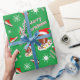 Um padrão de futebol de Natal de um na moda, de um tipo, com um jogador de futebol vestindo um chapéu de Papai Noel e sentado numa coroa branca rodeada por salgadinhos populares de futebol. Palavras de "Feliz Natal", listras de cana-de-açúcar, limpas de inverno de futebol, e Candy Cane com filme de futebol Um fantástico papel de embrulho de Natal para adeptos de futebol!