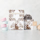 Um belo papel de enrolar de Natal com um veado vermelho e burro original com espirros e flores douradas, um texto de "Feliz Natal" sobre fundo branco. Coloque algumas cores e singularidade no seu presente embrulhando esta Feriada. Por favor, entre em contato comigo para obter ajuda.